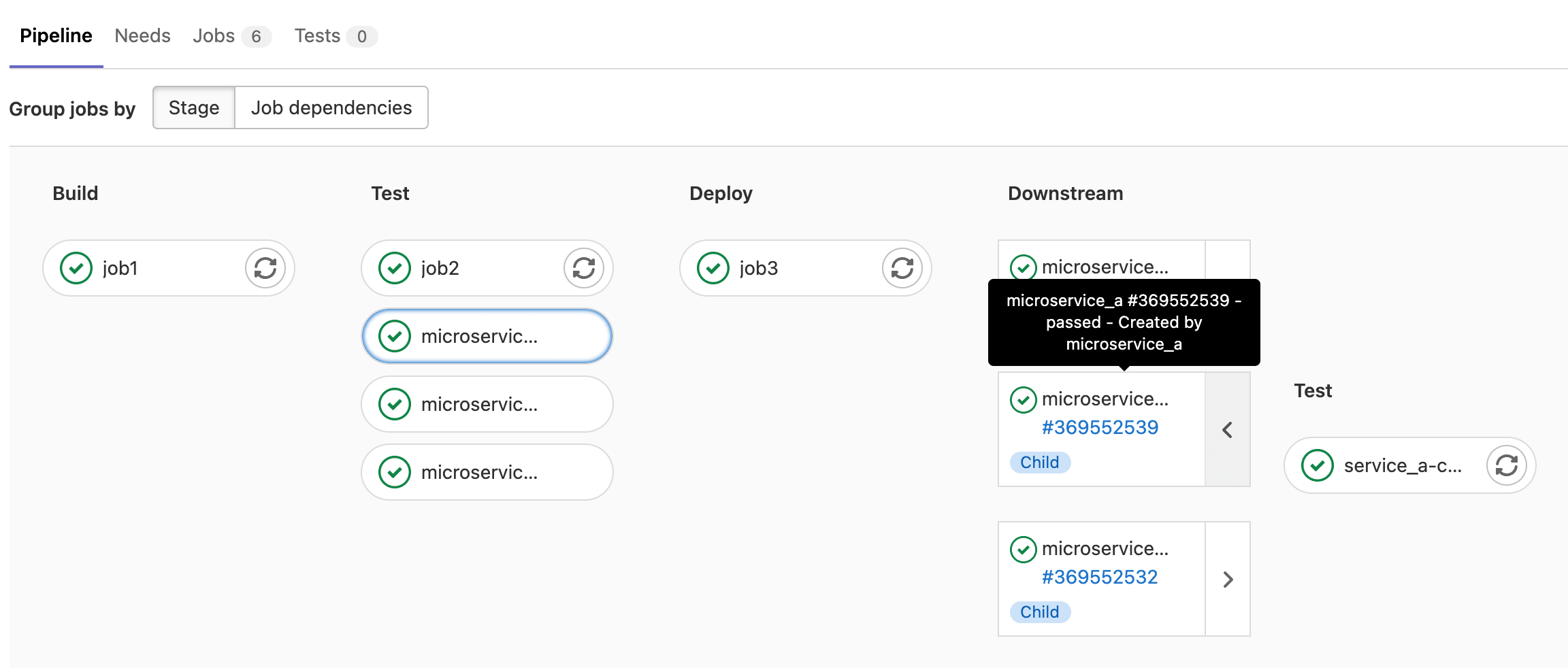 It's also possible to set jobs to run before or after triggering child pipelines, for example if you have common setup steps or a unified deployment at the end.