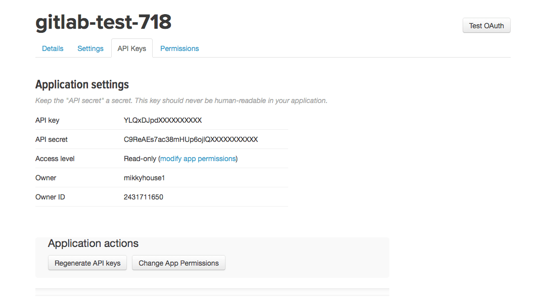 gitlab_rails['omniauth_providers'] = [ { name: "twitter", # label: "Provider name", # optional label for login button, defaults to "Twitter" app_id: "<your_api_key>", app_secret: "<your_api_secret>" } ]For installations from source: