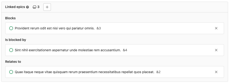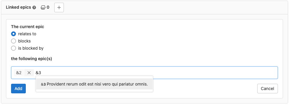 - For GitLab SaaS: the epic that you're editing must be in a group on GitLab Ultimate. The epics you're linking can be in a group on a lower tier.