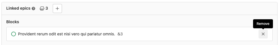 To remove a linked epic, in the Linked epics section of an epic, select Remove ({close}) next to each epic.