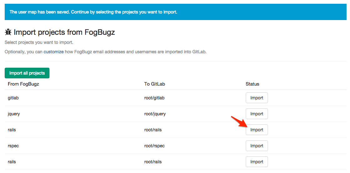 - Create a mapping from FogBugz users to GitLab users.