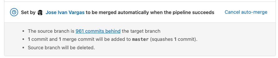 If you review a merge request and it's ready to merge, but the pipeline hasn't completed yet, you can set it to auto-merge. You don't have to remember later to merge the work manually: