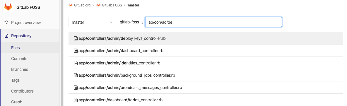 With file finder, you can search for a file in a repository directly from the GitLab UI.
